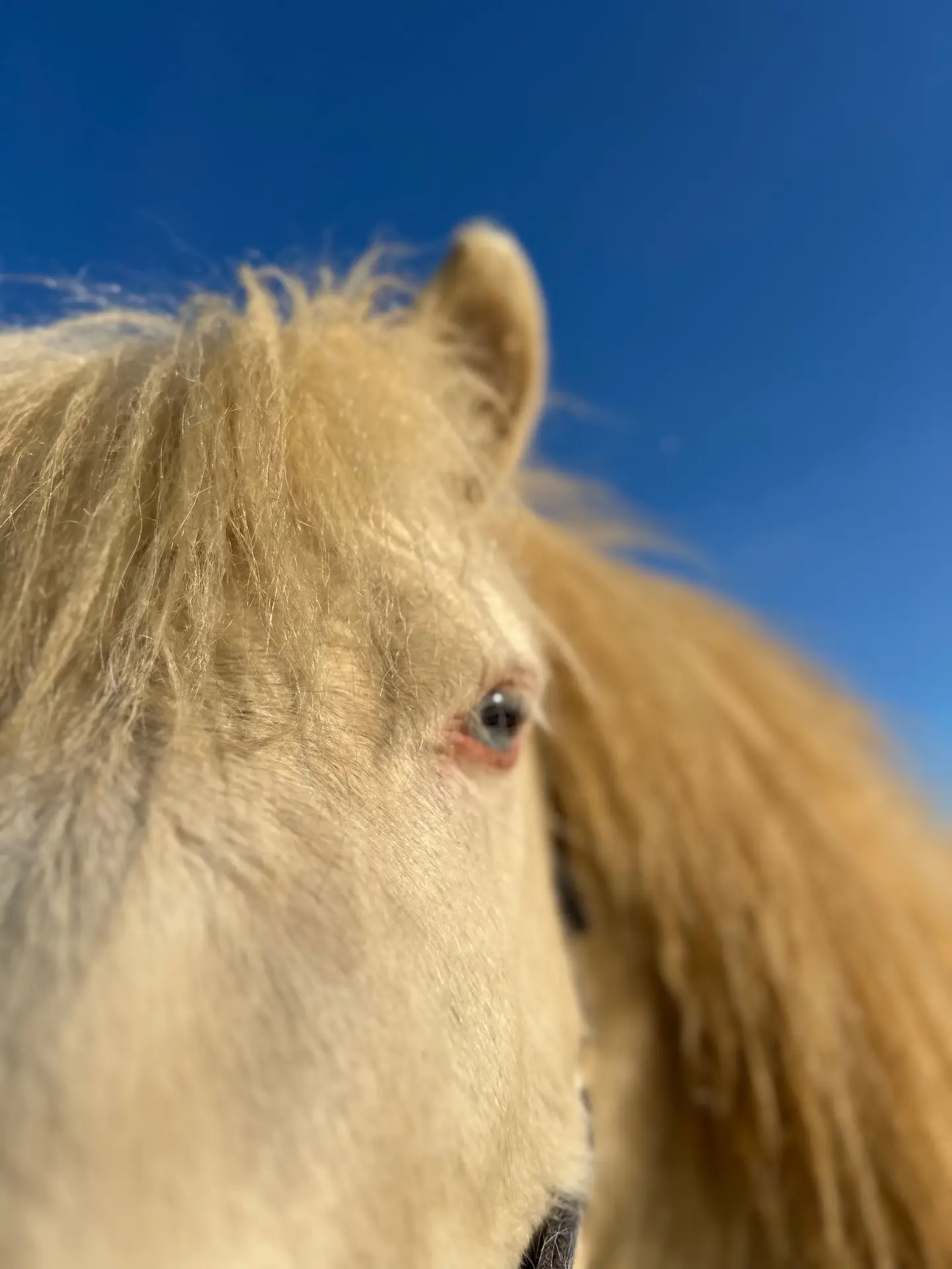 Il est crémello avec les yeux bleu homozygote sur le pie.
